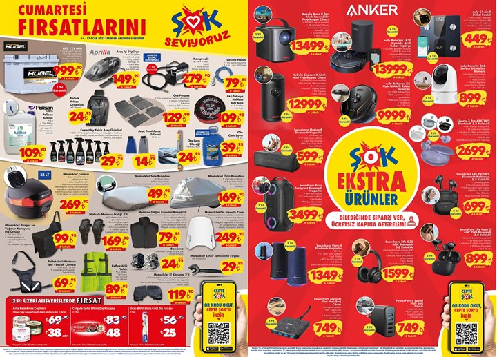 14 Ocak ŞOK aktüel teknoloji eserleri ortasında Anker markasına ilişkin pek Fazla ses ve dijital Ömür aygıtları yer alıyor. Robot süpürge, kablosuz hoparlör, projeksiyon aygıtı, tam kablosuz kulaklık, kamera ve şarj eserleri bunlar ortasında.
