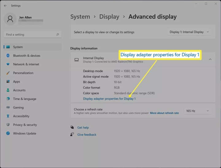 4. Ekran 1 için Manzara Bağdaştırıcı Özellikleri’ne tıklayın.